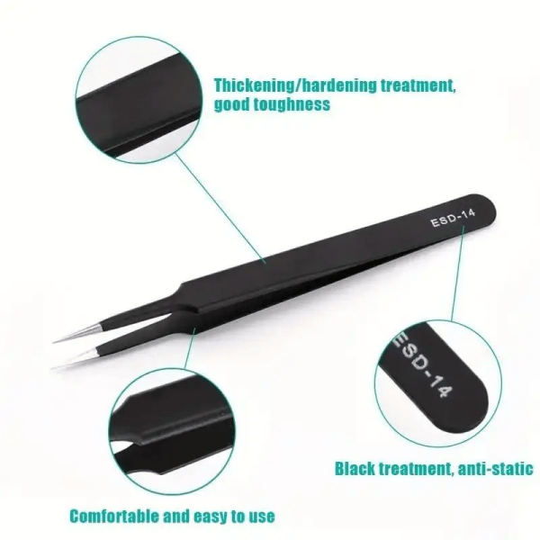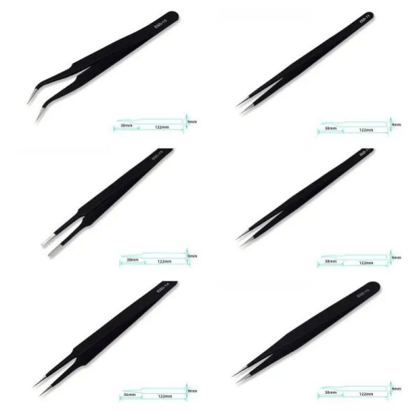 Include: ESD 10 tweezers, ESD 11 tweezers, ESD 12 tweezers, ESD 13 tweezers, ESD 14 tweezers, ESD 15 tweezers